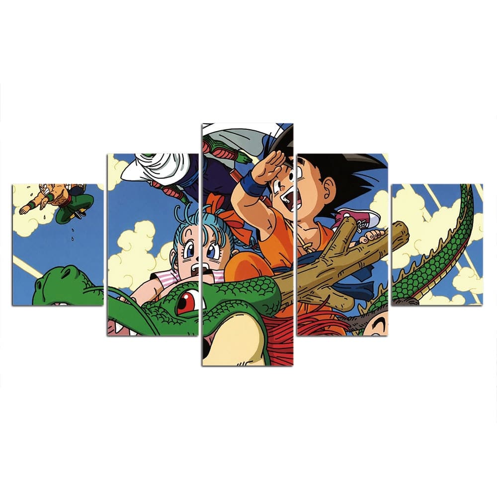 Son Goku e la sua fedele amica Bulma durante la loro ricerca delle sfere del drago. Un quadro colorato e accattivante.